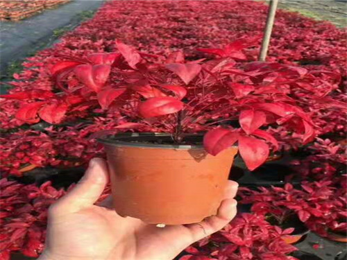 火焰南天竹屬常綠灌木,性喜溫暖及濕潤的環(huán)境,比較耐陰耐寒,容易養(yǎng)護(hù),它的莖干成叢生長,葉片四季不落,其春夏秋葉色為翠綠色,冬季葉片變?yōu)榛鸺t色,紅葉期大約4個月,9月下旬開始漸漸變紅,12月中旬至2月上旬葉色鮮紅艷麗,到4月下旬逐漸轉(zhuǎn)淡變綠。